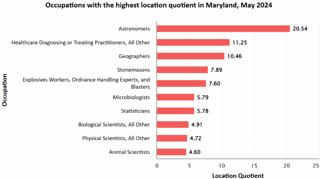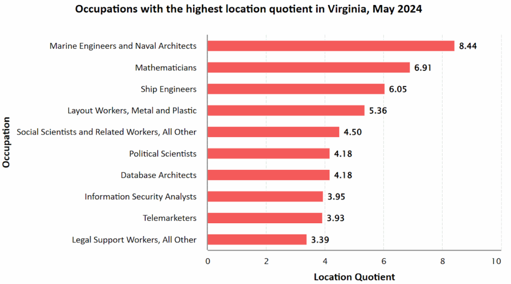 The DMV ranks among the top U.S. regions for the density of math-driven industries including federal agencies, IT, engineering, and biotech.